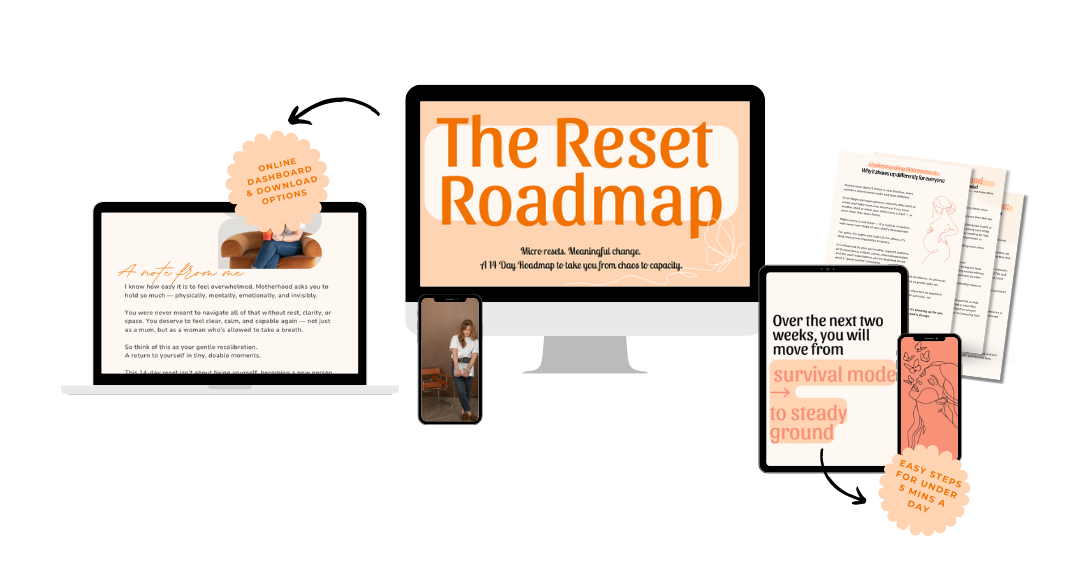 I created The Reset Roadmap because I saw the same thing again and again, in my own life and in the women I support. Mums weren’t unmotivated or disorganised; they were overwhelmed and trying to fix it by pushing harder.